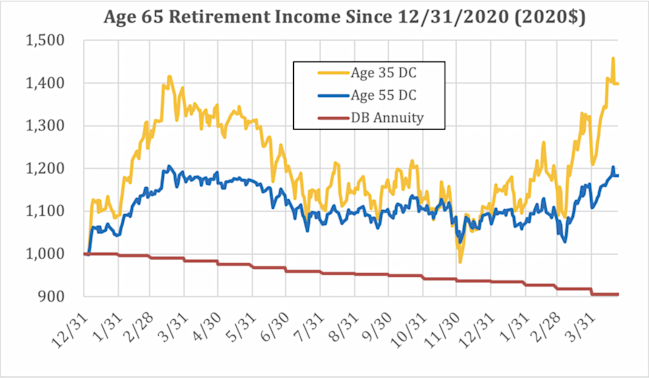 The chart makes clear that non-annuitizing DC participants did much better since the end of 2020 than, e.g., a DB participant of any age or a DC participant who annuitized at the beginning of the year.