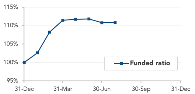A plan that was 90% funded at beginning of the year is now around 100% funded.