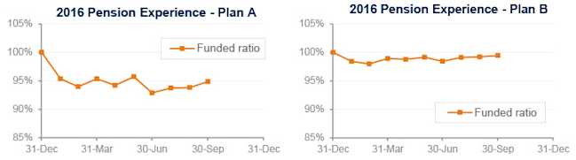 The stock market has bounced back from losses in early 2016, posting modest gains so far this year, and bonds have done even better on the strength of lower interest rates. These gains have not kept up with increase in pension liabilities however, which are driven by the same decline in interest rates, which remain near record low levels.